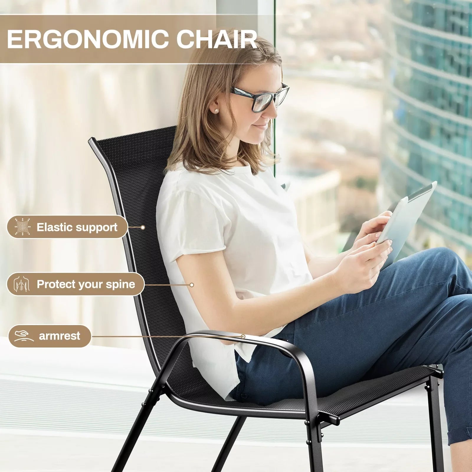 - Stackable and versatile: Four stackable chairs for easy storage; suitable for patio, lawn, garden, poolside, backyard, or dining room.